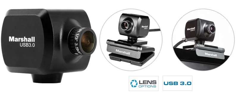 The Marshall CV503-U3 is a straight forward USB3.0 HD camera with secure locking USB connection and customizable lens options. CV503-U3 uses drivers already existent on your PC, Laptop, Mac or Linux system and is software agnostic so any soft codec can be used. Settings adjustable via UVC1.5 offer simple plug-and-play connectivity and reliable operation.