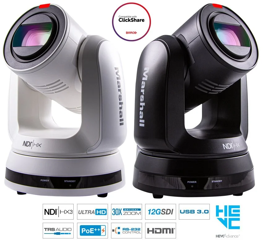 Marshall CV730-ND3 PTZ cameras feature a nine (9) million-pixel sensor with a long 30x optical zoom range and flexible simultaneous 12GSDI and HDMI outputs with NDI®|HX3 and USB3 capability. The crystal-clear UHD (4K) images up to 3840x2160p at 60fps offers a professional camera source to any production. NDI®|HX3 delivers low latency, high quality, frame-accurate video, and audio in real time to IP workflows. NDI®5.5 and NDI|Tools opens the ability to integrate more video devices and applications into your production workflow.